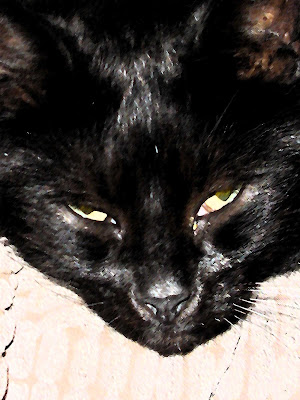 The next day, before she went home for her lunch she went outside, to the back of the toilet. She picked up a black, furry kitten She placed it inside her shawl and took it home. It took milk from her fingertips just a few drops at a time while she sat at the table eating her lunch.